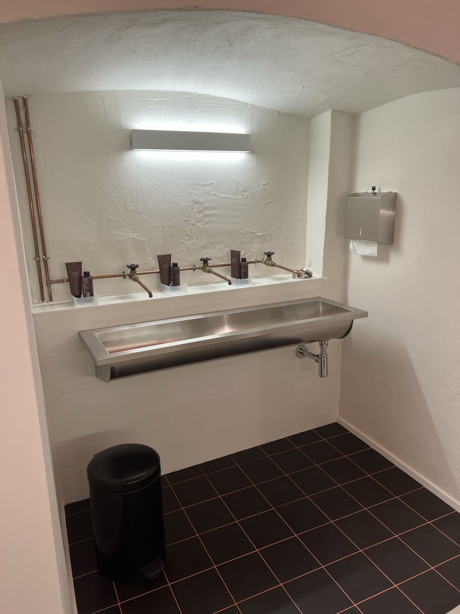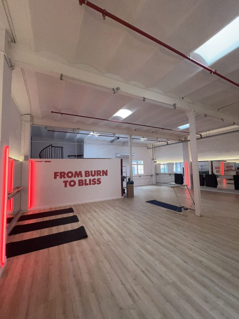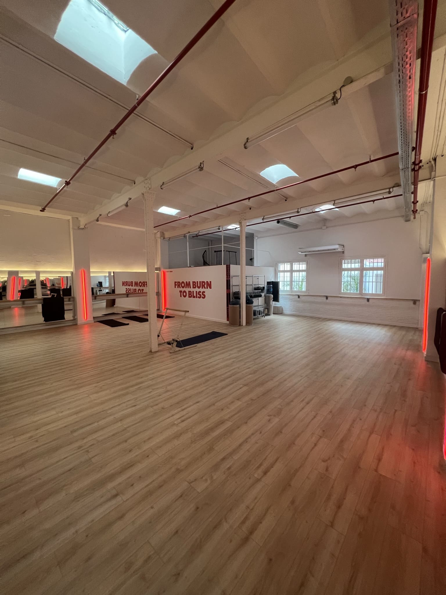 Reforma integral de local comercial de 250m2 ubicado en el barrio de gracia. Derribo integral, albañilería: nuevos revestimiento alicatados 20×20 con borada color corporativo, aplicación de pintura y esmalte en todo el local, trasdosados de pladur hidrófugos, carpinteria metálica: creación de un espacio revestido con chapa minionda adaptada a las paredes existentes con un foseado LED. Colocación de luminarias, Colocación de suelo laminado Finfloor AC5, aplicación de mortero autonivelante. Realización de todas las instalaciones electricas, saneamiento y fontanería del local.